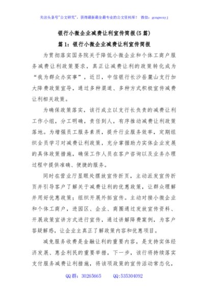/ (5篇)银行小微企业减费让利宣传简报