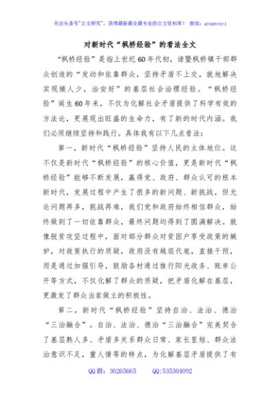 / 对新时代“枫桥经验”的看法全文