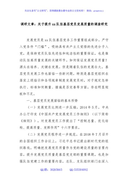 调研文章:关于提升xx队伍基层党员发展质量的调查研究