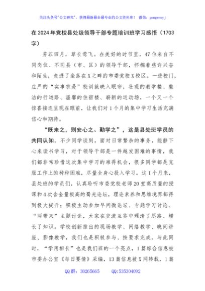 / 在2024年党校县处级领导干部专题培训班学习感悟(1703字)