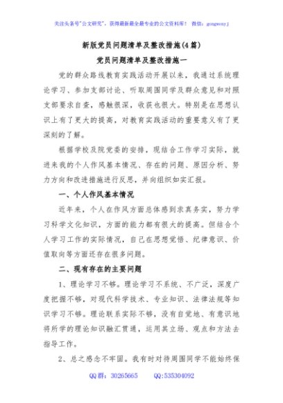 / (4篇)新版党员问题清单及整改措施