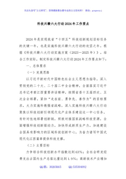/ 科技兴赣六大行动2024年工作要点