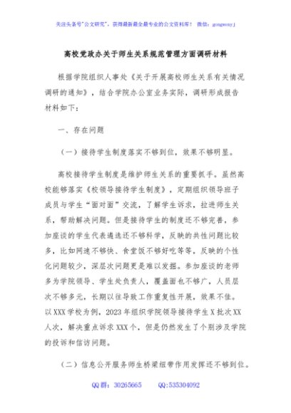 / 高校党政办关于师生关系规范管理方面调研材料