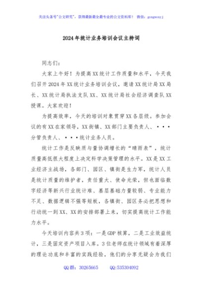 / 2024年统计业务培训会议主持词