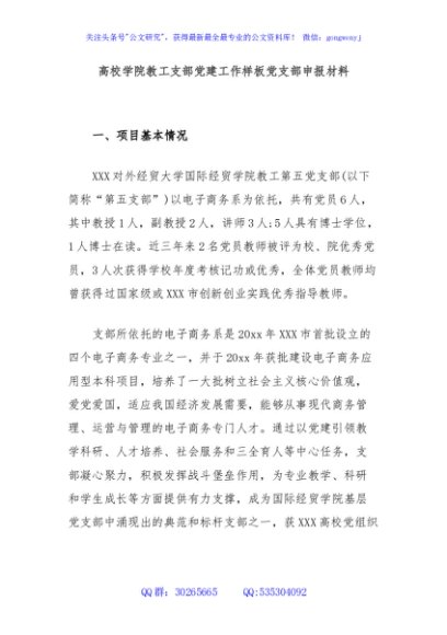 / 高校学院教工支部党建工作样板党支部申报材料