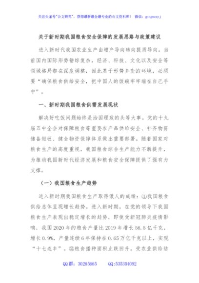 / 关于新时期我国粮食安全保障的发展思路与政策建议