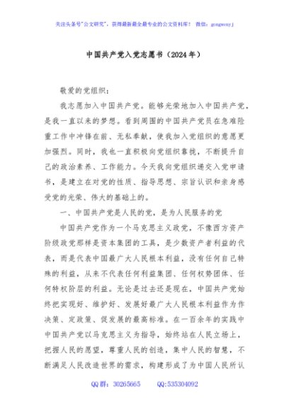 中国共产党入党志愿书(2024年)
