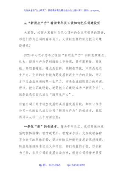 / 从“新质生产力”看待青年员工该如何把公司建设好