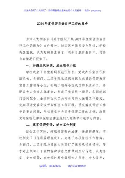 / 2024年度保密自查自评工作的报告