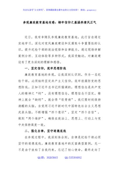 / 参观廉政教育基地有感:铸牢信仰之基涵养清风正气