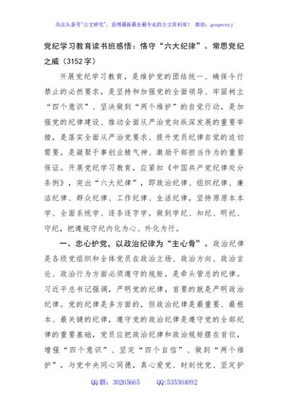 / 党纪学习教育读书班感悟:恪守“六大纪律”、常思党纪之威(3152字)