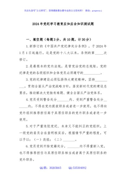 / 2024年党纪学习教育应知应会知识测试题