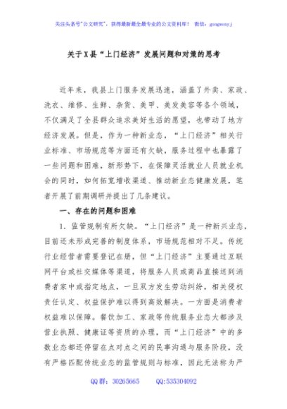 / 关于X县“上门经济”发展问题和对策的思考