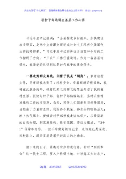 / 驻村干部选调生基层工作心得