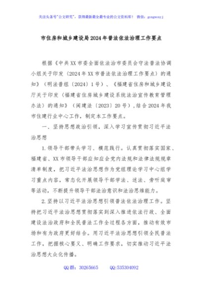 / 市住房和城乡建设局2024年普法依法治理工作要点