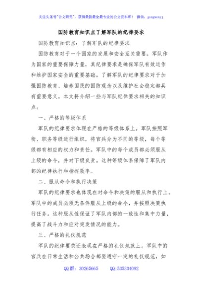 / 国防教育知识点了解军队的纪律要求