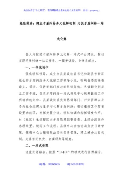 / 经验做法:建立矛盾纠纷多元化解机制 力促矛盾纠纷一站式化解