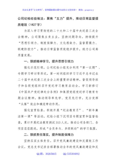 / 国企纪检经验做法:聚焦“五力”提升,推动日常监督提质增效(1827字)