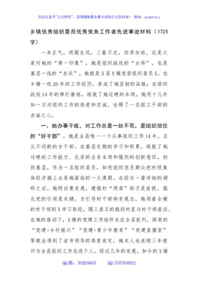 / 乡镇优秀组织委员优秀党务工作者先进事迹材料
