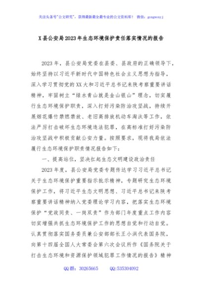 / X县公安局2023年生态环境保护责任落实情况的报告