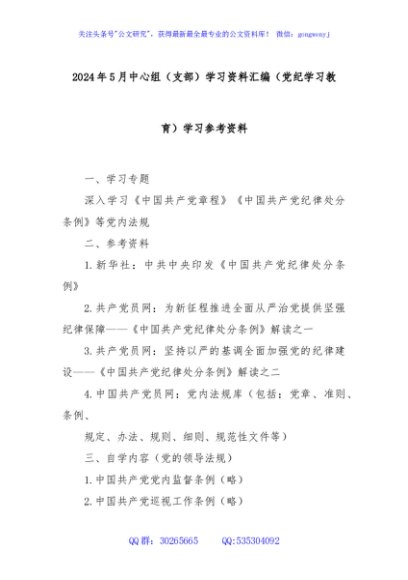 / 2024年5月中心组(支部)学习资料汇编(党纪学习教育)