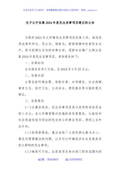 / 关于公开征集2024年度民生实事项目建议的公告