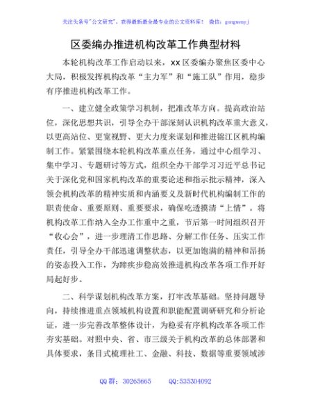 / 区委编办推进机构改革工作典型材料