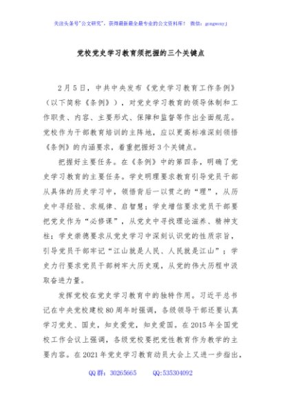 / 党校党史学习教育须把握的三个关键点