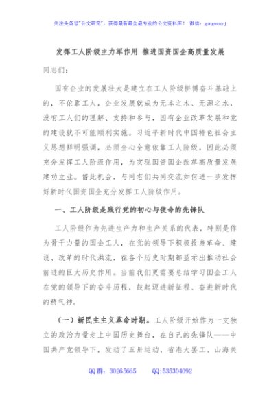 / 发挥工人阶级主力军作用 推进国资国企高质量发展