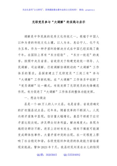 / 无职党员参与“大调解”的实践与启示