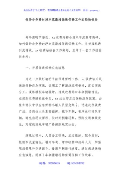 / 做好非免费时段车流激增保通保畅工作的经验做法