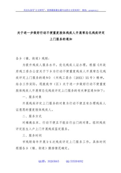 / 关于进一步做好行动不便重度肢体残疾人开展常态化残疾评定上门服务的通知