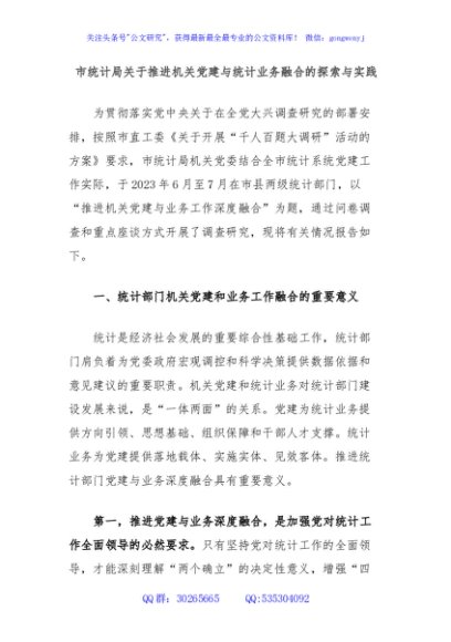 / 市统计局关于推进机关党建与统计业务融合的探索与实践