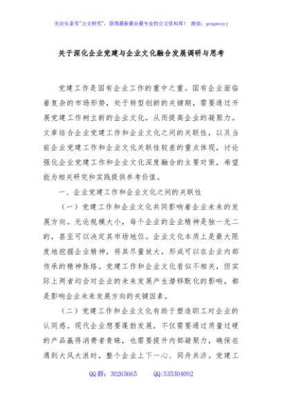 / 关于深化企业党建与企业文化融合发展调研与思考