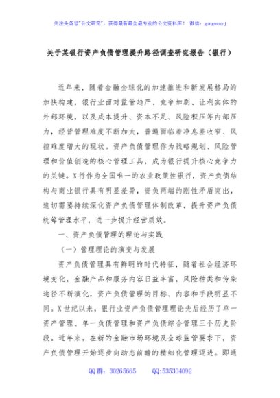 / 关于某银行资产负债管理提升路径调查研究报告(银行)