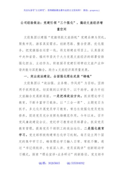 / 公司经验做法:党建引领“三个强化”,撬动文旅经济增量空间