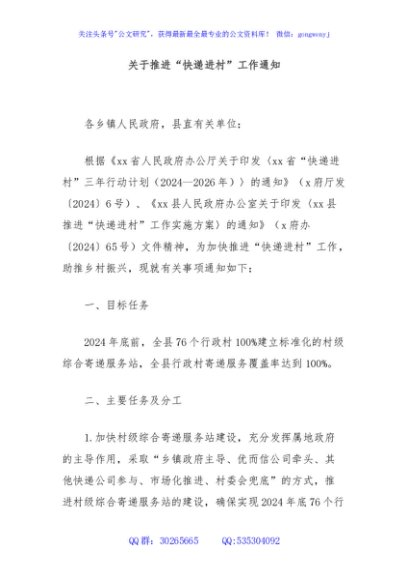 / 关于推进“快递进村”工作通知