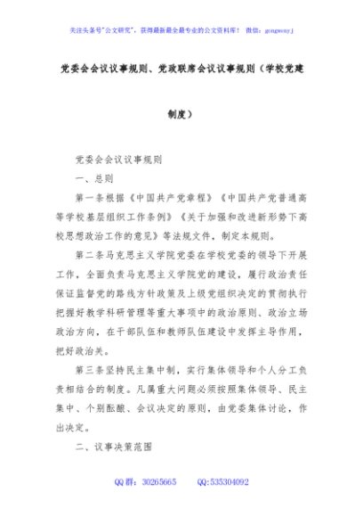 / 党委会会议议事规则、党政联席会议议事规则(学校党建制度)
