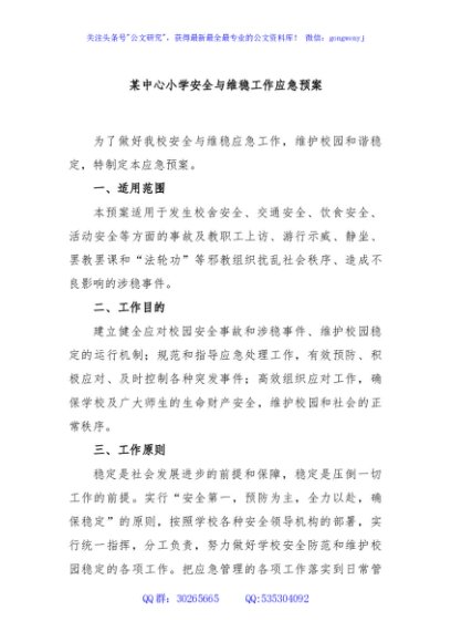 / 某中心小学安全与维稳工作应急预案