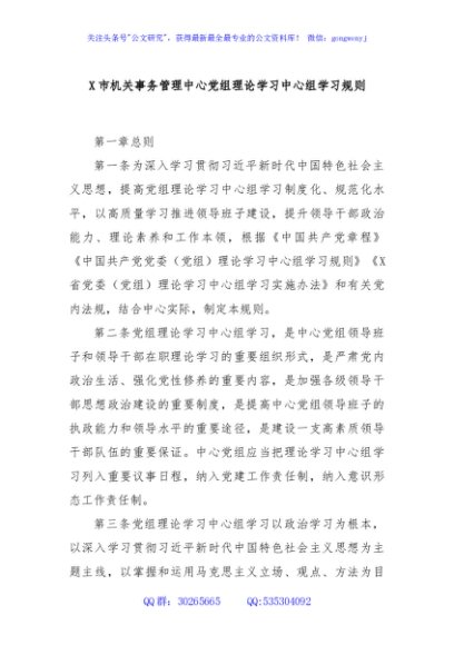 / X市机关事务管理中心党组理论学习中心组学习规则