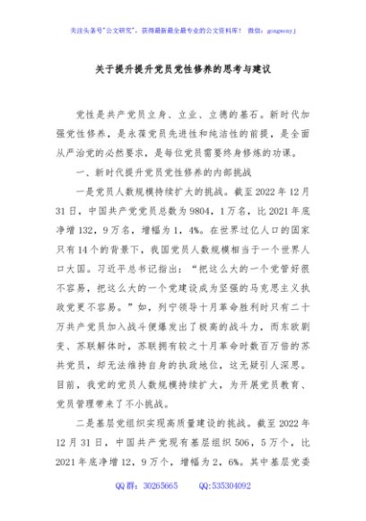 / 关于提升提升党员党性修养的思考与建议