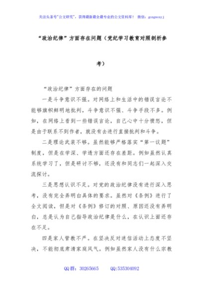 “政治纪律”方面存在问题(党纪学习教育对照剖析参考)