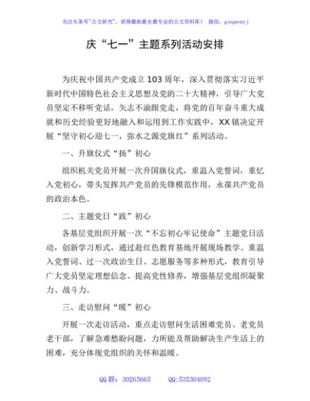 / 庆“七一”主题系列活动安排