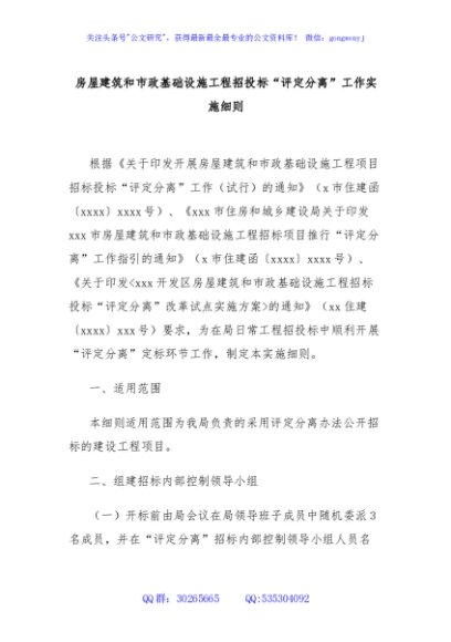 / 房屋建筑和市政基础设施工程招投标“评定分离”工作实施细则