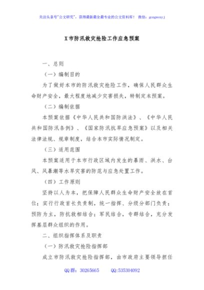 / X市防汛救灾抢险工作应急预案