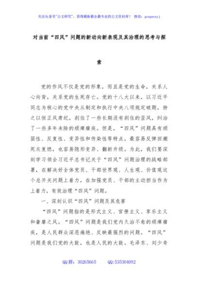 对当前“四风”问题的新动向新表现及其治理的思考与探索