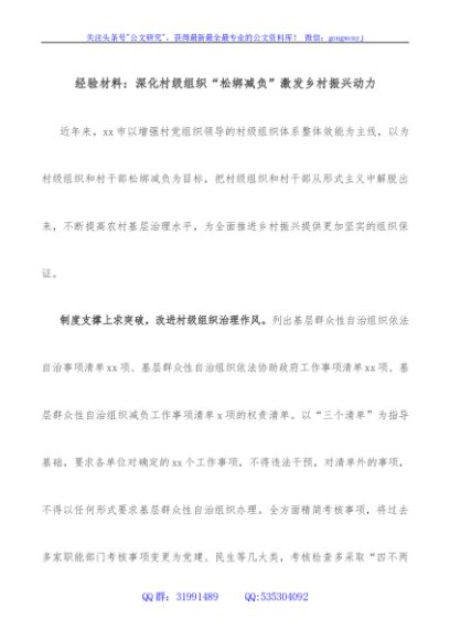 / 经验材料:深化村级组织“松绑减负”激发乡村振兴动力