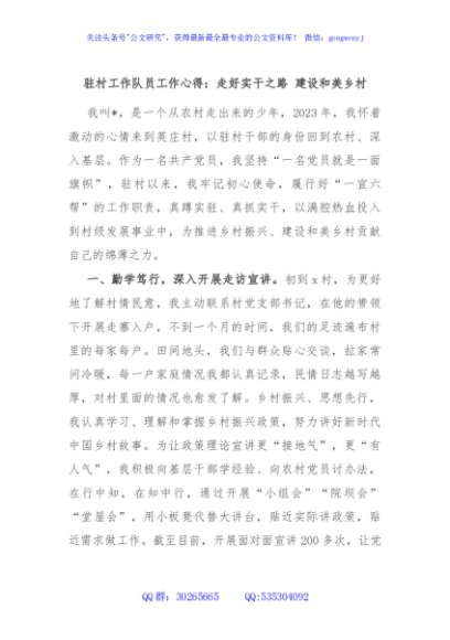 / 驻村工作队员工作心得:走好实干之路 建设和美乡村