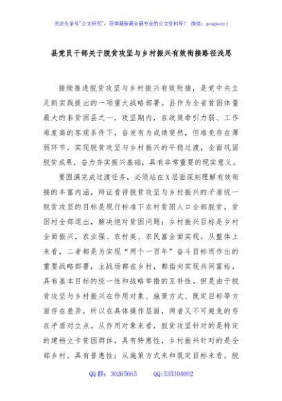 / 县党员干部关于脱贫攻坚与乡村振兴有效衔接路径浅思