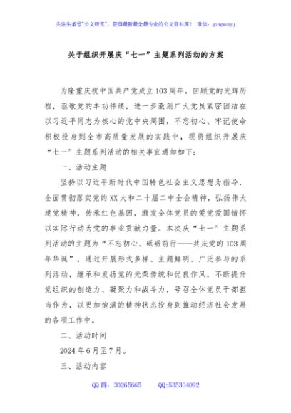 / 关于组织开展庆“七一”主题系列活动的方案